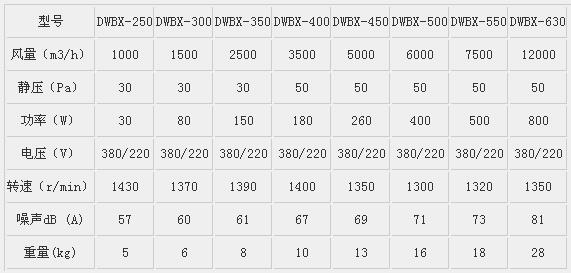 DWBX板壁式軸流風機一般用于排風,如用于送風需在訂貨時另行說明。