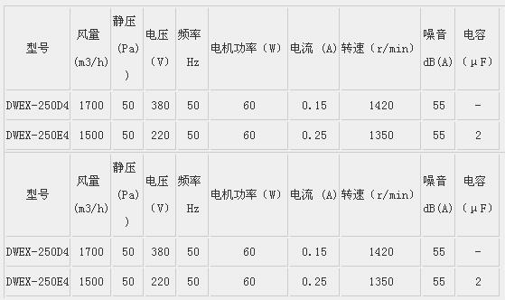 DWEX(WEX)系列風機一般用于邊墻壁式排風,配設45°防雨罩(或特殊制造成60°)和防蟲網(夜間可防止昆蟲循燈光飛入車間)。可按需要制成邊墻送風機型號為DWSP(WSP),配設90°防雨罩(防風、雨、塵)和防蟲網(夜間可防止昆蟲循燈光飛入車間)。